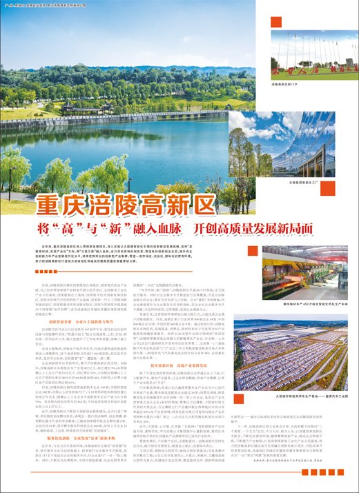 近年来,重庆涪陵高新区深入贯彻新发展理念,深入实施以大数据智能化引领的创新驱动发展战略,坚持“发展高科技、实现产业化”方向,将“又高又新”融入血脉,全力深化体制机制改革,营造良好创新创业生态,提升自主创新能力和产业发展现代化水平,培育优势突出的创新型产业集群,营造一流市场化、法治化、国际化的营商环境,努力把涪陵高新区打造成为成渝地区双城经济圈高质量发展重要动力源。