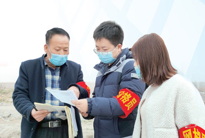 王永战(中)和曹佳(左)正与商户交流。 |