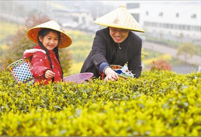 近日,重庆市永川区永荣镇万亩茶园基地里,26个家庭90多人参加了采摘春茶以及学茶艺、品新茶等亲子采茶体验活动。