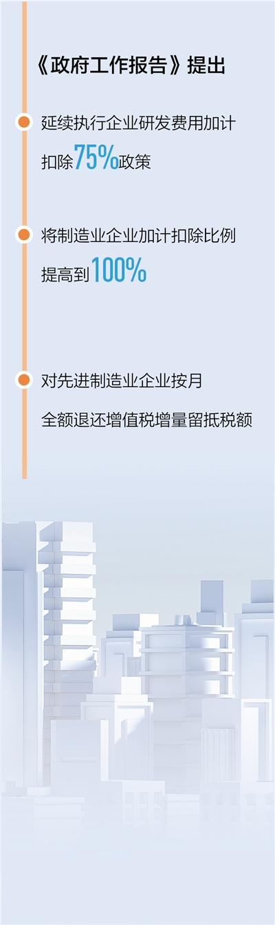为帮助科技创新企业抢占科技制高点,我国对高新技术企业减按15%的税率征收企业所得税,并不断拓展高新技术企业认定范围。值得关注的是,今年的《政府工作报告》提出“对先进制造业企业按月全额退还增值税增量留抵税额”。北京国家会计学院教授李旭红认为,此前我国明确了部分先进制造业增值税增量留抵退税政策,此次进一步扩大政策适用范围,有助于促进先进制造业企业有效使用资金扩大设备更新和技术改造投资,以创新促进我国先进制造业高质量发展。