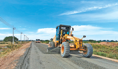 中国援助为柬埔寨千村万户带来“友谊路”“幸福泉”,为当地民众减贫脱困做出了实实在在的贡献。图为干丹省的中国援柬乡村道路项目二期施工现场。 |