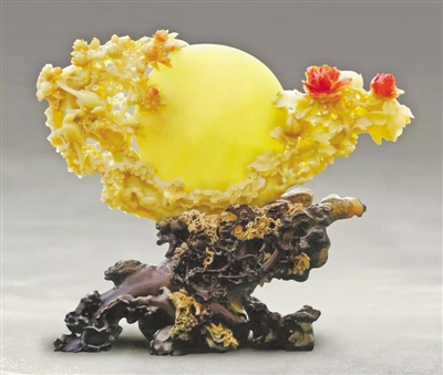 倪东方的石雕作品《花好月圆》。 |