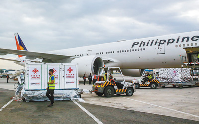 3月24日,中国援助菲律宾的第二批科兴新冠疫苗运抵菲首都马尼拉,帮助菲律宾加速实施新冠疫苗接种计划。 |