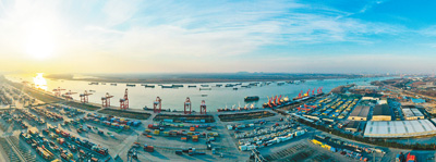 近日,江苏省港口集团南京港龙潭集装箱有限公司港口生产繁忙。 |