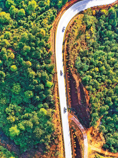 图为4月4日,车辆行驶在会昌县林富村的乡村公路上。