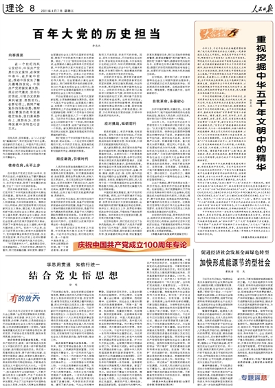 百年大党的历史担当(庆祝中国共产党成立100周年专论)
