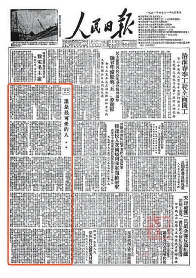 图为1951年4月11日,《谁是最可爱的人》首发于人民日报头版。 |