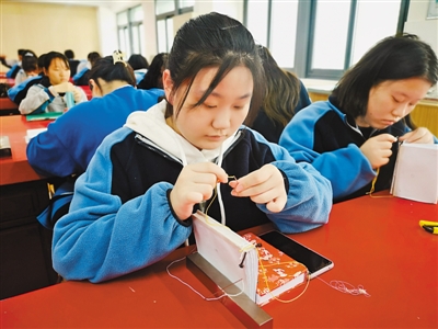 2017年,南京市以莫愁中专为依托,挂牌成立南京非物质文化遗产专业学院。莫愁中专副校长王燕介绍,学院开设的文物修复类、艺术设计类、市场营销类课程,分别对应保护传承、开发利用、普及推广,构成了职业学校非遗教育的三大板块。