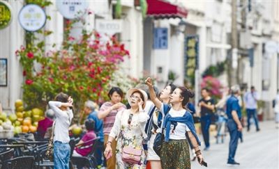 来自全国各地的游客在海口骑楼老街游玩,感受历史文化街区魅力。 |