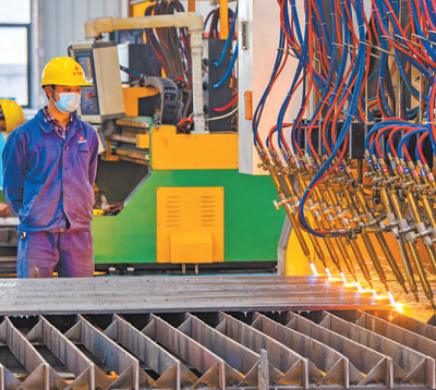 江苏省太仓港经济技术开发区,造船订单增加,一家造船企业生产满负荷运行,生产员工加班加点建造船舶。 |