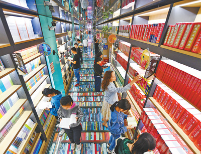 在世界读书日到来之际,各地图书馆、书店纷纷推出主题阅读活动,吸引众多市民参与全民阅读。图为4月23日,重庆市綦江区,市民在书店阅读、选购图书。
