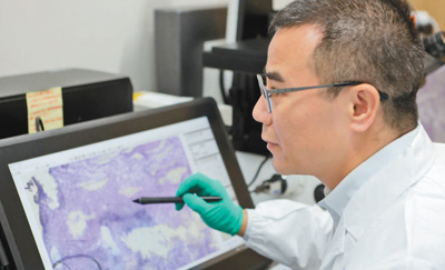 显微仪器下,蓝色试剂浸染过的标本,薄薄一片。在彭广敦的解说中,每一个细胞都充满生命的活力,“细胞成长的过程就好比一场音乐会,不同的乐器发出不同的声音,从而形成一首美妙的协奏曲。研究这个过程,能揭示细胞发育的规律。”