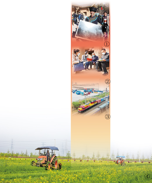 图③:3月31日,一列满载货物的中欧班列从成都国际铁路港驶出。