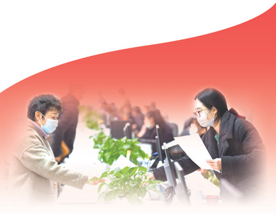 2021年2月18日,在湖北省荆州市政务服务中心,工作人员在为群众办理事项。 |
