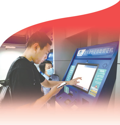 2020年10月27日,广州公安机关工作人员在帮助市民使用居民身份证自助领证机。 |