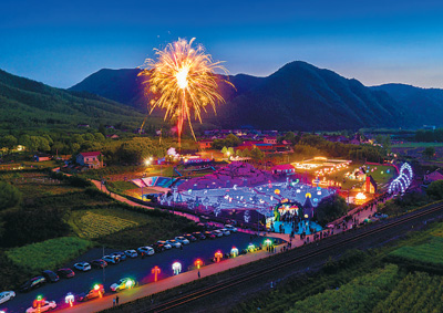 一场夜间灯光秀在安徽省宁国市港口镇西村举办。近年来,西村探索将摄影艺术、户外装置艺术、绘画艺术等深度融合,走出了一条“艺术点亮乡村、文化振兴乡村”之路。 李晓红 章念东摄影报道(影像中国)