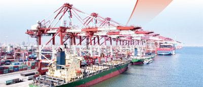 忙碌的天津港联盟国际集装箱码头。 新华社记者 赵子硕摄