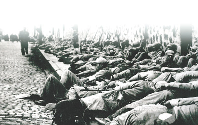 攻入上海市区后,解放军战士露宿街头。 |