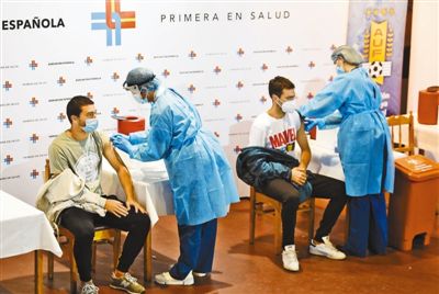 日前,部分乌拉圭甲级联赛球员在首都蒙得维的亚百年纪念体育场内接种了首剂中国科兴新冠疫苗。该批疫苗是由北京科兴中维生物技术有限公司捐赠给南美洲足联的,主要用于保障美洲杯等国际足球赛事的顺利举行。 |