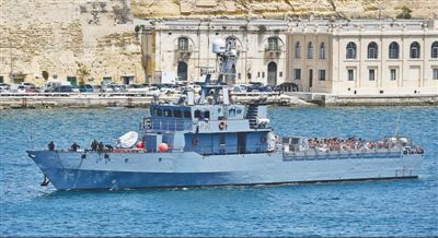 马耳他内政部新闻发言人5月11日表示,约70名非法移民发出求救信号后,马耳他执法人员10日晚在南部海域展开搜寻,并于11日将他们带上岸。这些非法移民随后接受了新冠病毒核酸检测,并被送往一个居留中心进行隔离。图为11日,被马耳他执法人员救出的非法移民抵达马耳他森格莱阿。