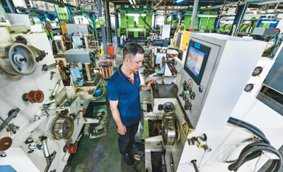 5月17日,江西省赣州市一家企业正在赶制出口订单,产品为精密小型扁平漆包线。