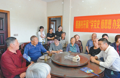今年以来,浙江省嘉善县惠民街道开展“学党史 悟思想 办实事 开新局”主题活动,在学习党史的同时了解村情民意,帮助老百姓办实事、解难题。图为5月25日,惠民街道惠通村党总支书记陈明刚(右一)召集村民代表会议,进行党史学习并交流致富经验。