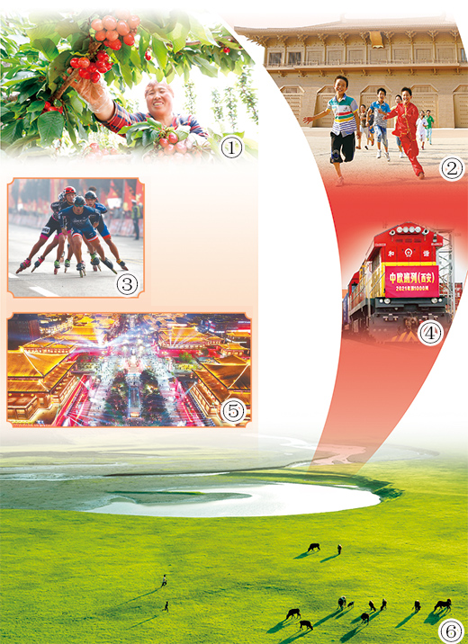 图④:4月13日,从西安国际港站驶出开往哈萨克斯坦的X9041次中欧班列(西安),这是2021年陕西开行的第1000列中欧班列。