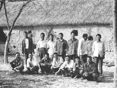 一九八一年,部分“大包干”带头人在茅草屋农舍前合影(资料照片)。 |