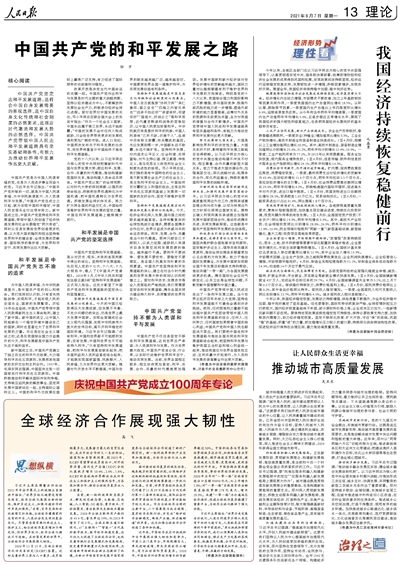中国共产党的和平发展之路(庆祝中国共产党成立100周年专论)