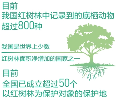 我国是世界上少数红树林面积净增加的国家之一,加强红树林的保护和修复一直是我国海洋生态保护修复的重要内容。自然资源部指导沿海有关地方政府实施“蓝色海湾”整治行动。目前全国已成立超过50个以红树林为保护对象的保护地。