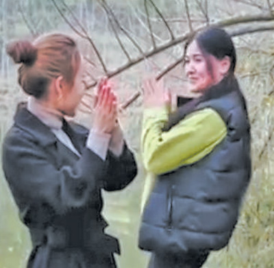 马觉娜(右)和村干部共同录制短视频。 |