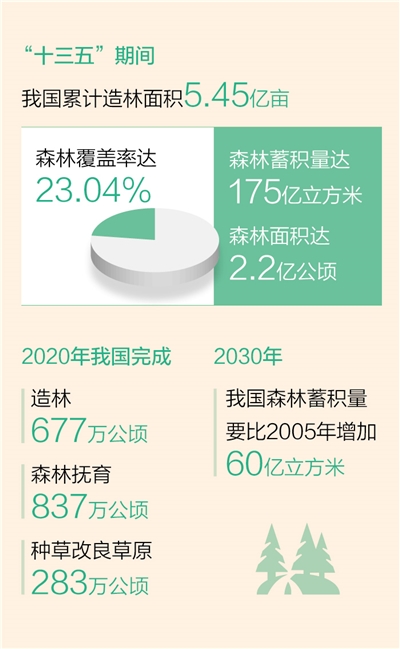 据悉,2000年到2017年全球新增绿色面积中,约1/4来自中国,中国贡献比例居全球首位。2020年我国完成造林677万公顷、森林抚育837万公顷、种草改良草原283万公顷。增加森林面积、提高森林质量、提升生态系统碳汇增量,将为我国碳达峰、碳中和目标、维护全球生态安全做出更大贡献。