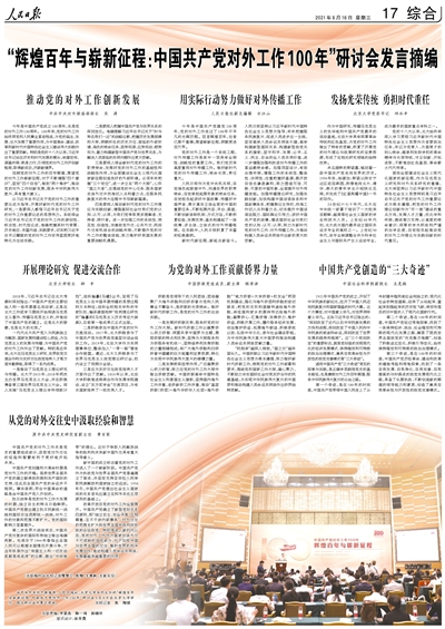 “辉煌百年与崭新征程:中国共产党对外工作100年”研讨会发言摘编