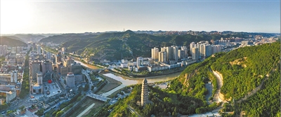 6月3日,延安城区鸟瞰。 |
