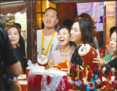 游客在延安市二道街夜市选购腰鼓。 |