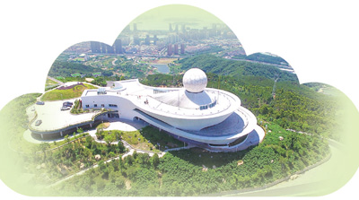 在福建厦门海沧气象公园,圆球状的先进天气雷达时刻监测着天气气候变化。 |