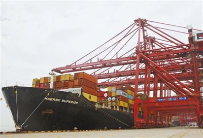 6月22日,浙江宁波舟山港穿山港区,一艘货船在准备装卸集装箱。今年1—5月,宁波舟山港抓住东盟等主要出口市场快速增长的发展机遇,新增多条国际航线,实现货物吞吐量同比增长13.15%,集装箱吞吐量同比增长23.5%。