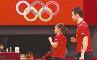 6月21日,许昕/刘诗雯(左)在混双比赛中庆祝得分。 |
