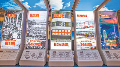 展览馆内电子展台正展示不同年代国内生产总值。 本报记者 张武军摄