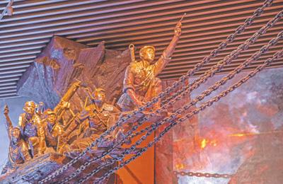 红军战士飞夺泸定桥的复原场景。 本报记者 张武军摄