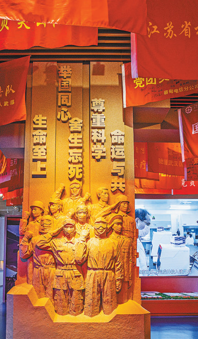抗击新冠肺炎疫情浮雕。 本报记者 张武军摄