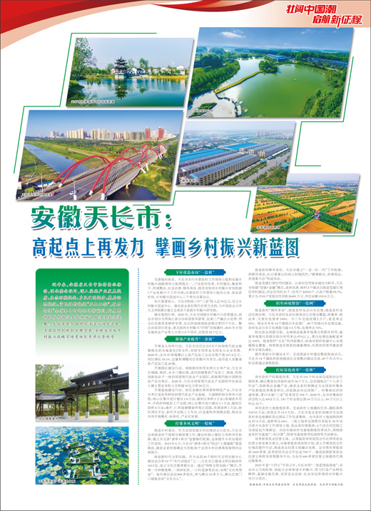 2021年是“十四五”开局之年,天长市将“一张蓝图绘到底”,举全市之力高标准、高起点全面推进乡村振兴,努力打造产业特色鲜明、基础设施完善、宜居宜业宜游、社会安定和谐的乡村振兴先行示范区。