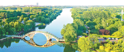 近年来,山东省深入推进蓝天、碧水、净土保卫战,构建生态环境分区管控体系,省级生态环境保护督察实现16市全覆盖,绿色转型全面加快。图为山东省莘县徒骇河畔绿树成荫,风景如画。