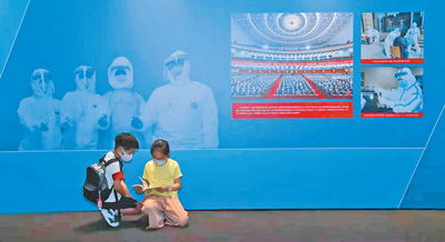 7月6日,两名香港学生参观展览,认真记笔记。 |