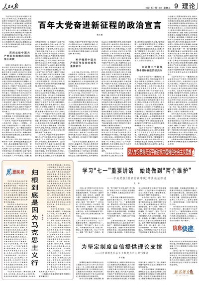 学习“七一”重要讲话 始终做到“两个维护”(信息快递)