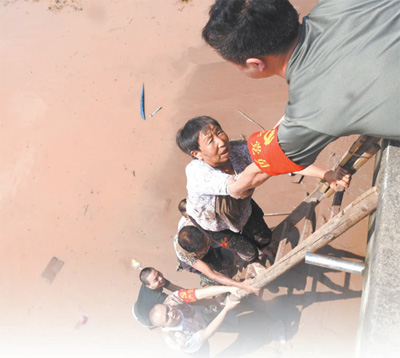 四川省渠县琅琊镇党员干部转移受困群众。 |