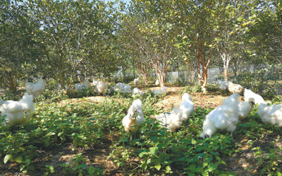 千烟洲试验站林下养殖的泰和乌鸡。 |