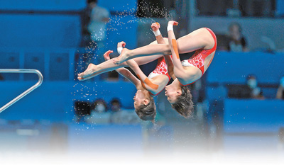 如此追求完美,源自中国跳水队多年传承的高标准、严要求。女子跳台项目的不确定性大,队里竞争相当激烈,张家齐和陈芋汐从一轮轮严苛的选拔中脱颖而出,她们的目标是接过前辈的接力棒,在奥运赛场延续辉煌。