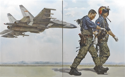 今年,“东风浩荡·火箭军庆祝中国共产党成立100周年美术作品展” “大海向党旗报告——海军第十一届万里海疆美术作品展”“红心向党 忠诚至上——武警部队庆祝中国共产党成立100周年暨第四届美术书法摄影展”等展览相继拉开帷幕。这些展览围绕向党的百年华诞献礼的主题,重点展示各军兵种坚决听党指挥、矢志奋斗强军的崭新面貌,如《百年逐梦》《中国鲲行动》《中国兵》《筑梦太空》《洗尘》《转场》《三伏天·驻训日记》《南沙,不变的守望》《突破“第一岛链”》《南海飞虹》《钢与泥·格斗》《骄阳》《整装待发》《强军战歌》《海军陆战队系列》《兵王的挑战》《梦》《猎鹰女队》等作品,军味、兵味愈加浓烈。这些作品的创作者,伴随着改革强军成长起来,本身就是强军兴军的参与者,他们以自己的切身体验抒写与见证,形成了一种同频共振的话语方式和审美表达。