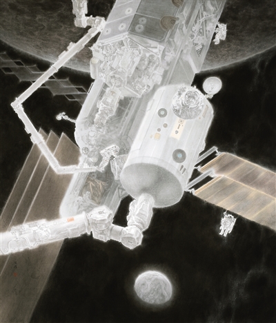 筑梦太空(中国画) |